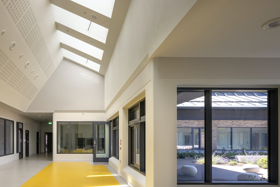 The village centre also features a gym, a woodwork workshop and a music room, while a series of courtyards and secure perimeter gardens allow patients direct access to nature from each ward.