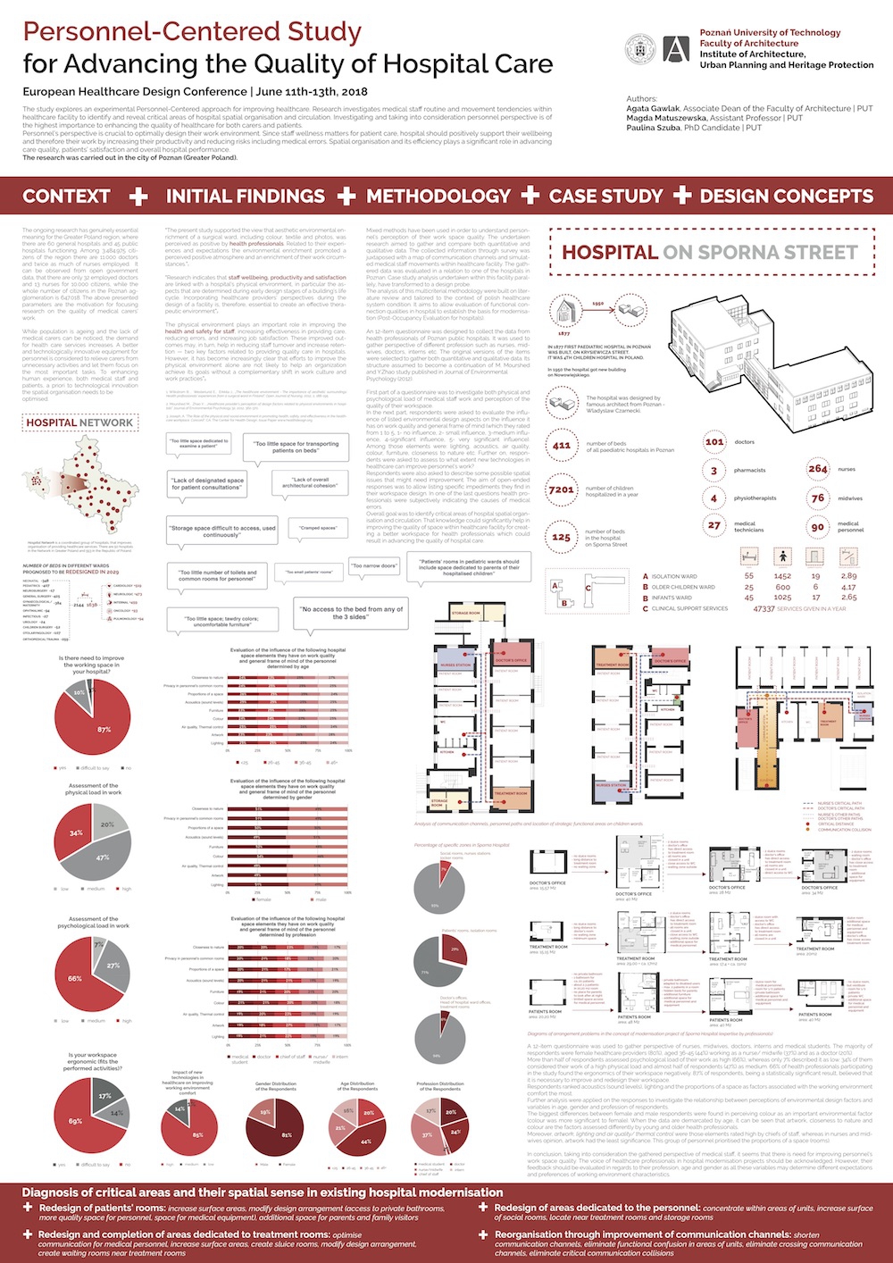 Mixed methods research has been undertaken to compare both quantitative and qualitative data. The collected information through surveys was juxtaposed with a map of medical staff movements in healthcare facilities. The data was evaluated in a relation to legislative guidelines. The analysis of this multi-criteria methodology allows evaluation of functional connection qualities in hospital and establishes the basis of modernisations (post-occupancy evaluation for hospitals). Staff perspective is crucial to optimally design their work environment. Since staff wellness matters for patient care, hospitals should positively support their wellbeing and work by increasing their productivity and reducing risks, including medical errors. Spatial organisation and its efficiency plays a significant role in advancing care quality, patient satisfaction and overall hospital performance.