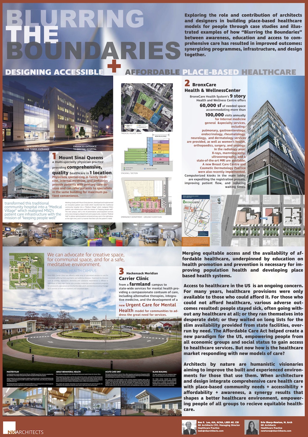 This poster will explore the role and contribution that architects and designers are making in the US towards building place-based healthcare models for the people in collaboration with healthcare professionals and clients.